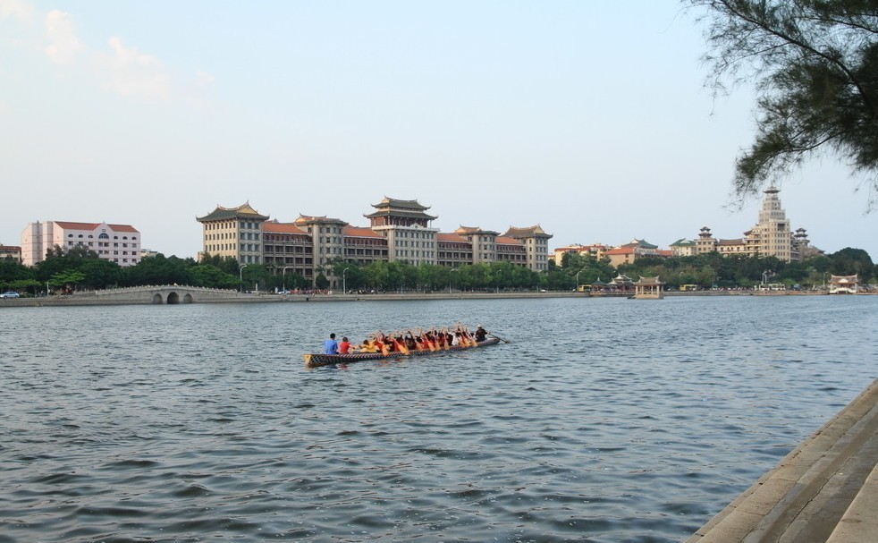 到达集美学村时,天便已经放晴了。集美,的确集人间大美,端午龙舟还在湖面上,清波荡漾,景色宜人。小伙伴们为拍摄到美景,都放弃入镜了呢。